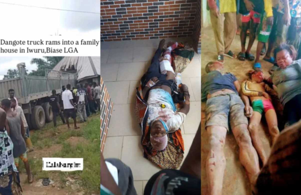A truck belonging to Dangote group has rammed into a family home in Iwuru Obio Ntan community, Biase LGA, Cross River State, killing three persons on the spot.